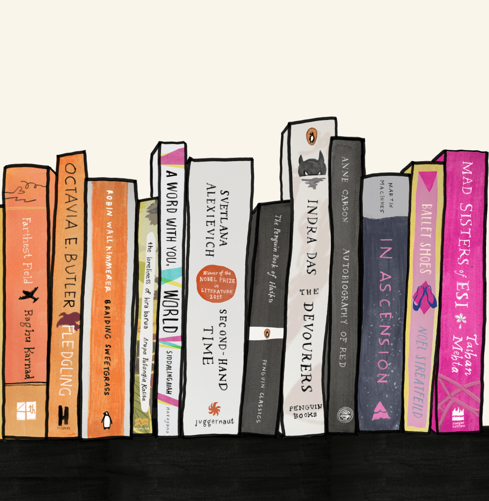 project: illustration for the cover of the champaca reading challenge, 2024 (published on the cover of an A6 and A5 notebook, and used across the website & social media channels)