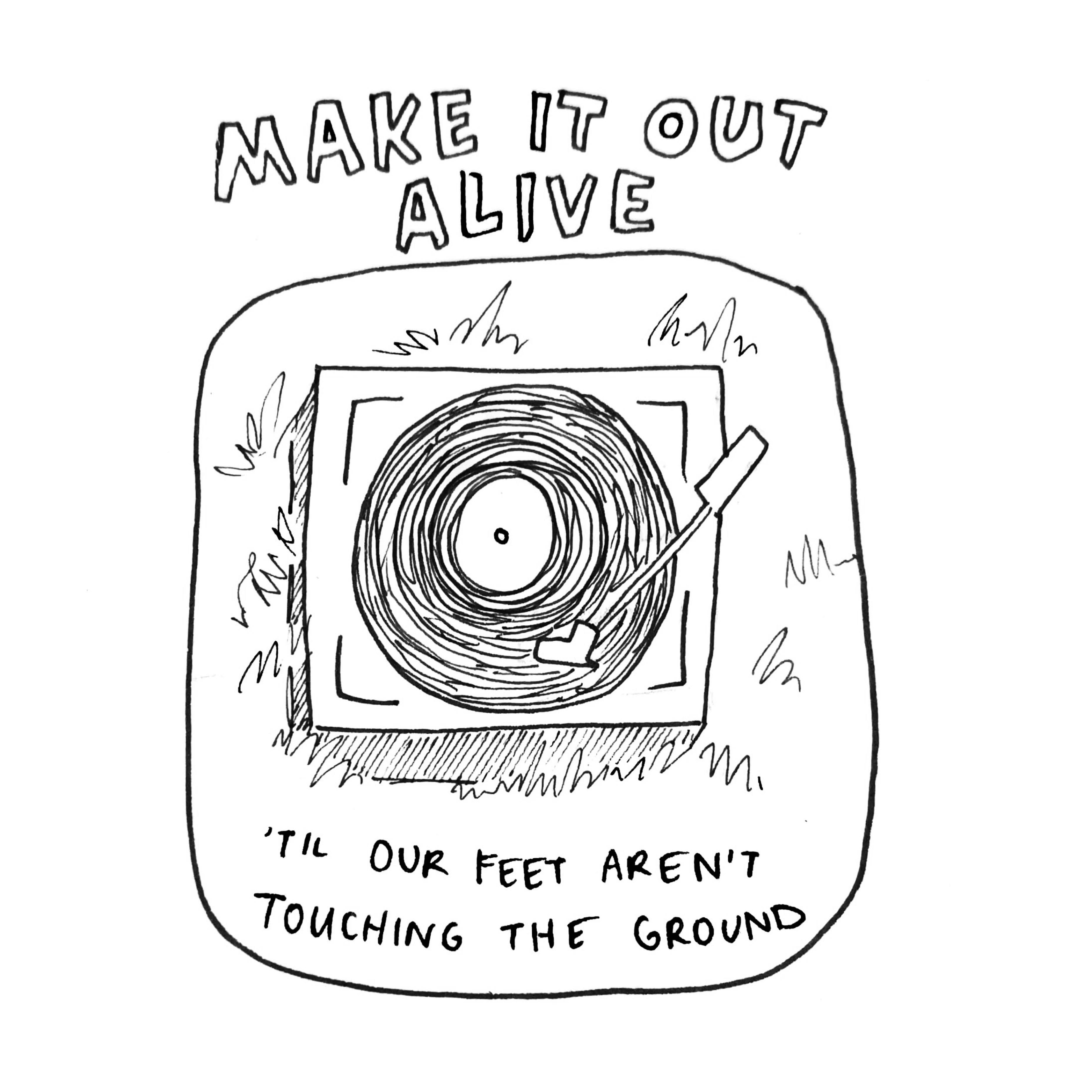 an ongoing series of illustrations for albums i love! each song is depicted through a small black-and-white image, with a line i love from the lyrics. artists covered include paramore, harry styles, angel olsen, among many others. pictured: make it out alive by angus & julia stone.
