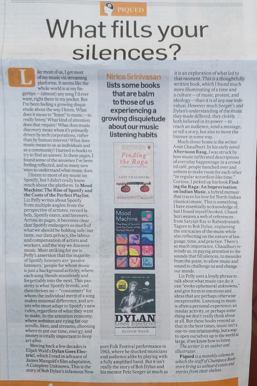 What fills your silences? (print and online): Book Feature on books on music