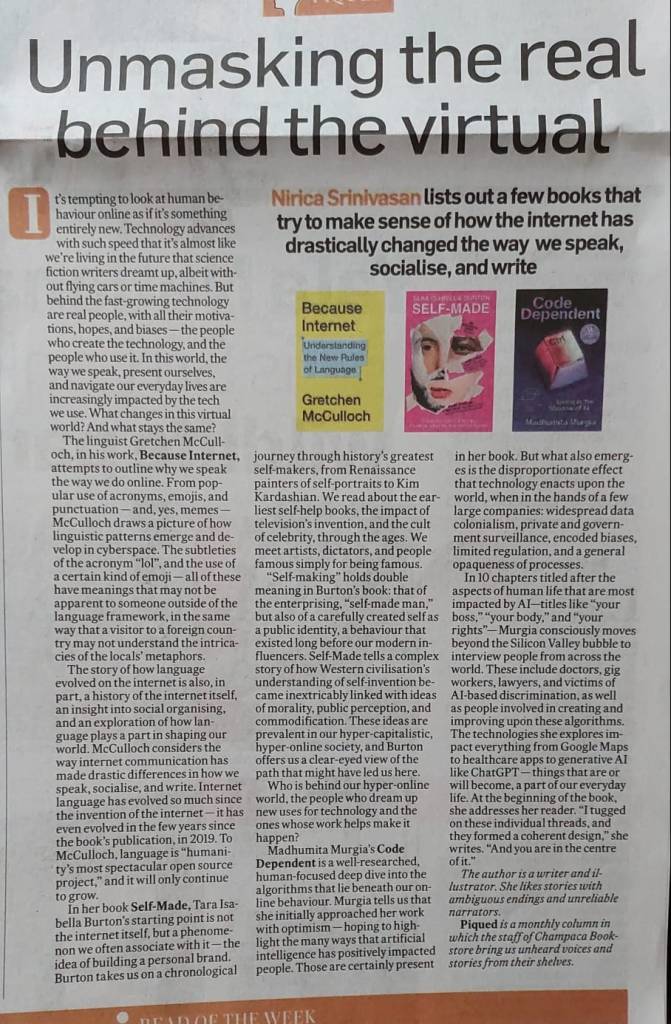 Blurring Lines (print and online): Book Feature on Jeet Thayil’s The Elsewhereans and Vauhini Vara’s Searches: Selfhood in the Digital Age