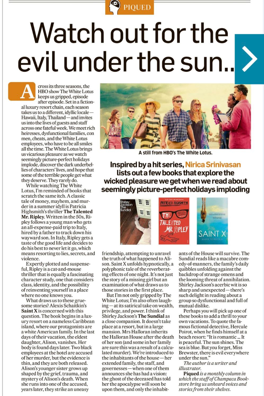 Watch out for the evil under the sun (print and online): Book Feature on recommendations based on The White Lotus